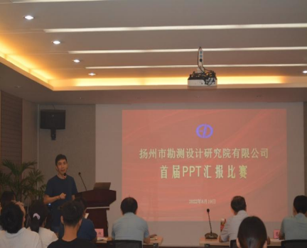 為切實提高職工項目成果PPT匯報業(yè)務水平和表達能力,8月19日,我公司舉辦了第一屆PPT匯報比賽,經(jīng)過激烈的比拼,最終10名選手獲獎。揚州院董事長張松、總經(jīng)理葛恒軍等6位院領導出席本次比賽并擔任評委。...